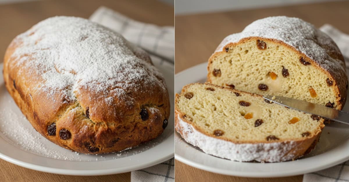 Receita de Stollen: passo a passo prático para um pão doce alemão aromático, com frutas cristalizadas maceradas, massa amanteigada e opções de marzipan, com dicas de fermentação, variações (vegana, sem glúten), conservação e finalização para garantir textura, sabor e apresentação natalina perfeitos.